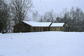 When I was fourteen years old, we built a house on a clearing atop a hill on our farm property, twenty miles away in the miniscule crossroad town of Apison. Here's how it looked in one of the snowstorms that periodically prevented us from making our way down the steep blacktop that connected us to McGhee Road. Separate garage doors for each car -- that must have been our dream. You can just make out the basketball goal we put up on the slight upslant of the driveway, the area where cars backing out of the garage were supposed to make a Y turn. This picture must have been taken in 1979 , because we hadn't yet built the tennis court that took up the entire foreground, surrounded by chain link fence. It was a 45 minute commute to high school, carpooling with my dad whose office was just across the river downtown. Once the nest was empty, while I was in graduate school at Georgia, my parents pulled up stakes and moved to St. Simons Island, Georgia. It's hard for me to imagine other people living in this house, which we designed and built, on this land that I visited every weekend with my dad to tend to the dwarf fruit trees we planted and the dozen or so head of cattle we raised. But the nature of houses is that they change hands, and the current owners, whoever they are, would probably find it just as odd that anyone else might feel proprietary about it.