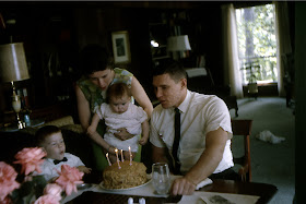 I don't remember the first house I lived in. My folks refer to it as the "Lakeshore House," somewhere in the Lakeshore Estates development in an unincorporated part of Hamilton County, Tennessee. It was the first place my parents lived after they were married. Even photos of this house's interiors or exteriors don't bring back any memories for me, although I'm sure my brother, three and a half years old than I, remembers it. This picture is my father's birthday in 1966 -- I'm about eight months old. That's my paternal grandmother's famous homemade caramel icing on a yellow layer cake. We moved out of this house when I was two or three years old.